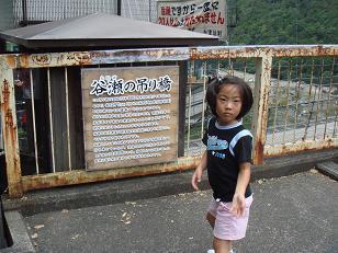 高さ54m長さ297.7mとのことで、大人の男性でもへっぴり腰になって橋の途中で引き返してくるのに、うちの娘は…。