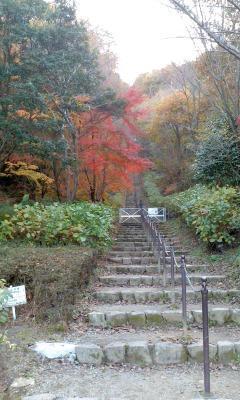 いつもの階段は周りの木々が色づいてきれいでした…。