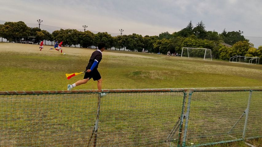 【商船高校 VS 忠海高校で副審するマサ】ちゃんとライン揃えてます。