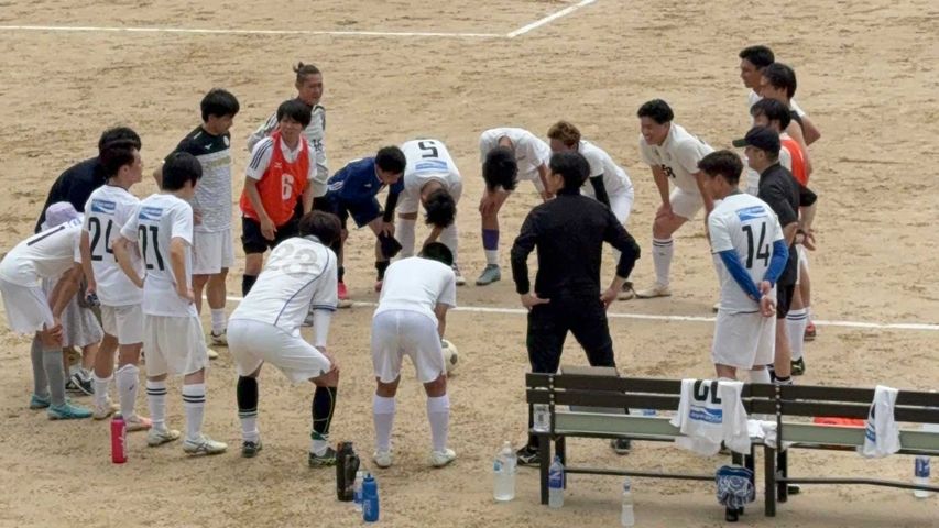 CKではこぼれ球をしょーごが拾い、鋭いミドルシュートを放つが、相手中盤にブロックされる。