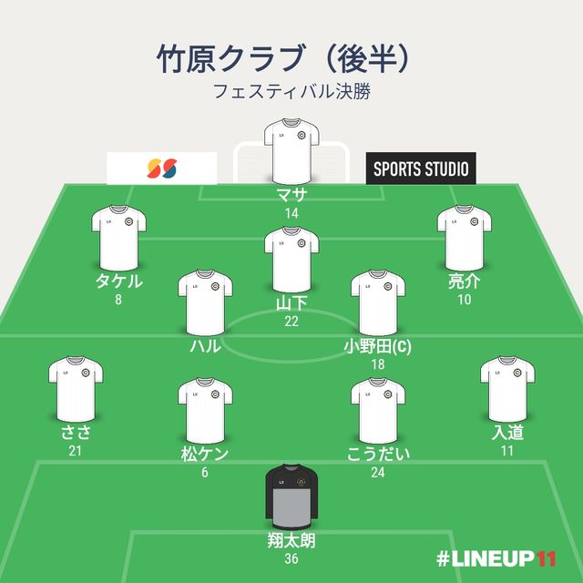 けいごと山下くんを交代させ、センターバックへ(CB)松ケン、RSBへ入道にポジション変更。