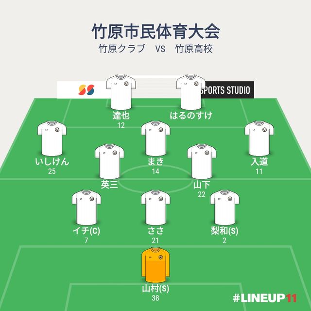 その後、ペナルティエリア前で横パスを受けた、元竹クのファンタジスタのまきが右足でキーパーの肩口を通るミドルシュートを決めて追加点!!