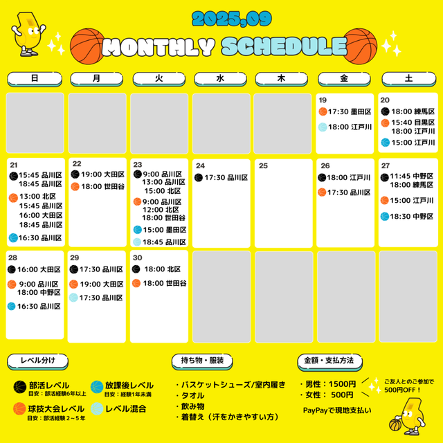 9月後半のスケジュールを公開しました🏀