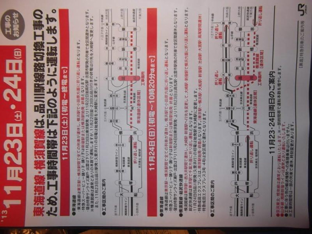 東海道線は、品川駅線路切換工事のため、本日23日初電〜明日24日10時20分頃まで、東京〜横浜駅間の上下線で運転を見合わせます。横浜駅で小田原方面へ折返し運転を行います。
