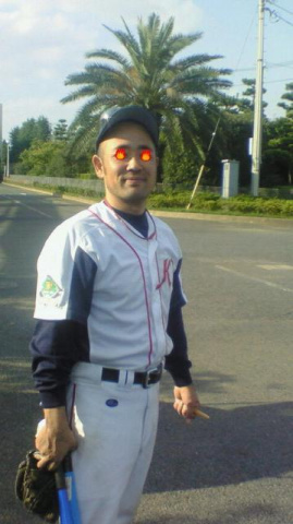 写真のようにひとたびグラウンドに入ると闘将のような目になりますが、