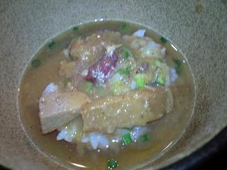 ここは出汁が張られたごはんに・・・、つけ汁を自分の好みでかけて頂くんです。