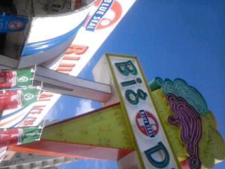 まずは、PIZZAHOUSE本店。那覇から浦添向けに、左方に基地を眺めながら、車を走らすと、左手に元アメリカン大使館の建物が目に入ります。建物の雰囲気を楽しみながらのランチやディナーは、異国情緒も味わえます。。。オススメは、[e144]おみやにもできる、ビッグシュークリーム。。。食べて満足の一品です!さらに北上すると。。。左側に、写真にあるアイスクリームの看板が。。。ブルーシールアイスクリームです!まさに、古き良き日のアメリカンを味わえます!これまたオススメは、種類も豊富の中から、紅芋(ウベ)味を推薦します〜。是非一度、ご賞味を。。。ほかにも、日本最大のドライブスルーのA&W、北谷(ちゃたん)町のアメリカンヴィレッジ【中日のキャンプ地もすぐ横に。。。】、そして、サンセットの似合うビーチ等、是非とも皆さんに味わってもらいたい場所は目白押しです!もしかしたら、キャンプシーズンに来る方もいると思いますので、アメリカンスタイルも楽しんでみてはいかがでしょうか!?