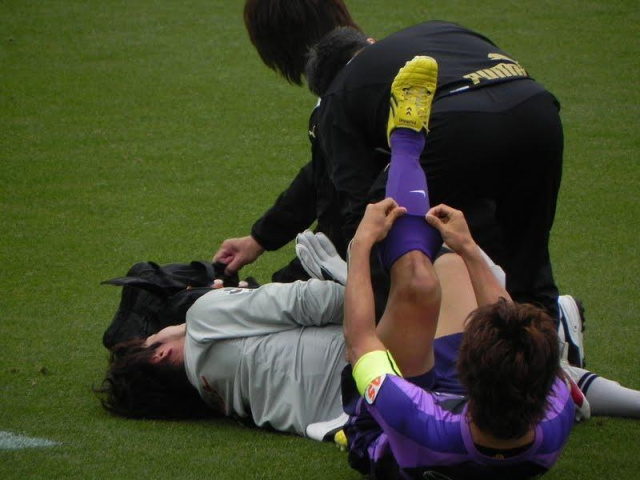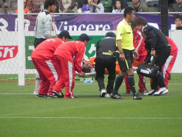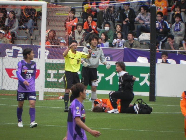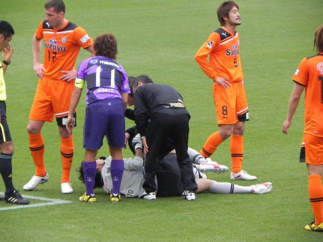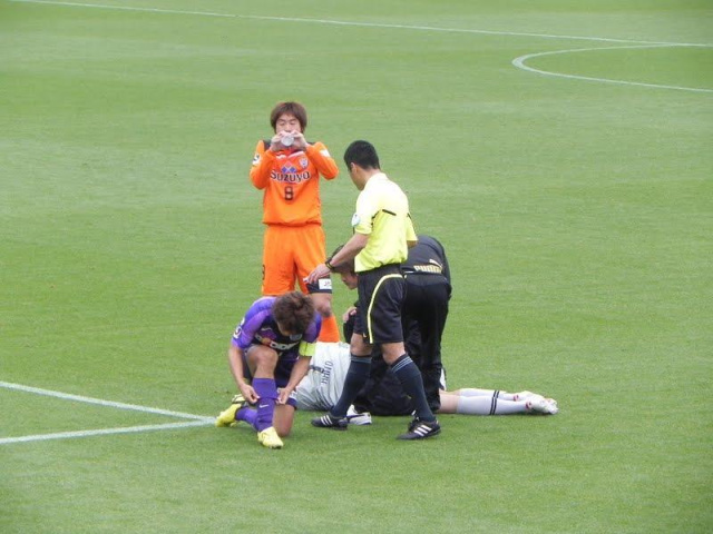 佐藤寿人さんと接触して、倒れる~~~~~!!