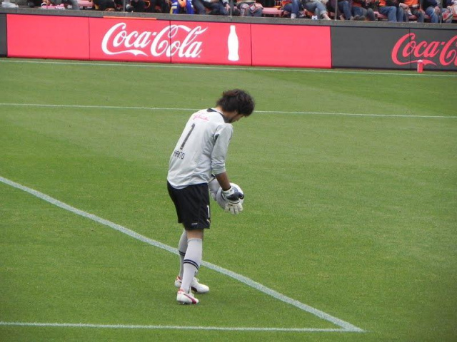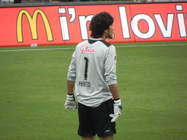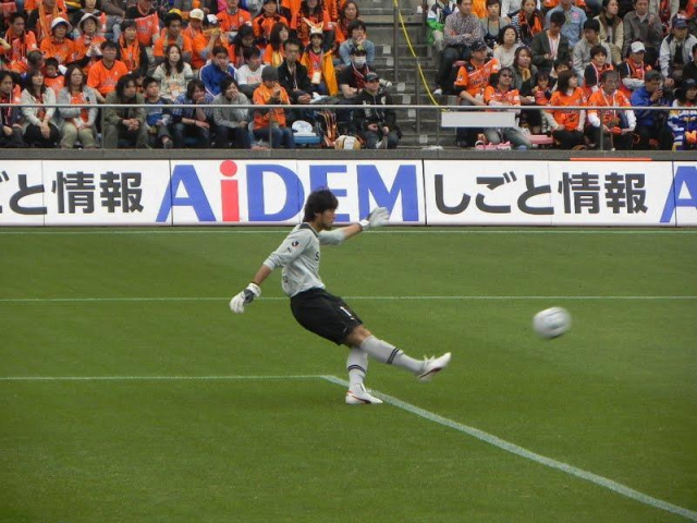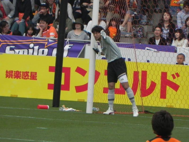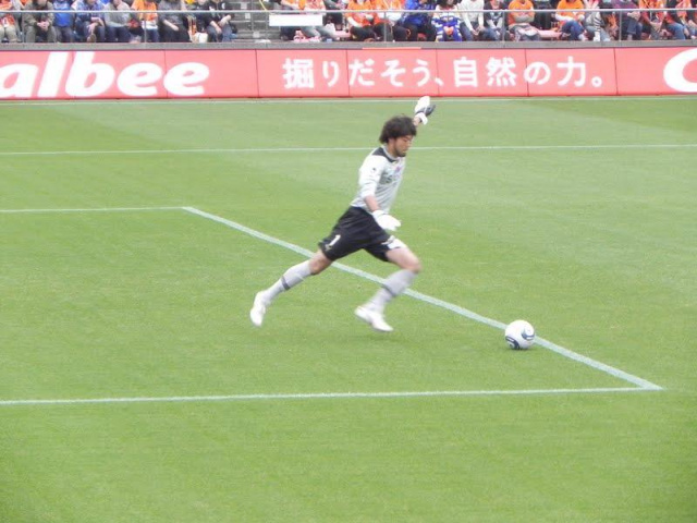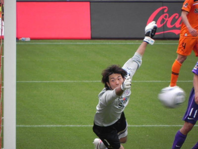 エスパの攻撃にもびくともせずに安定感たっぷりに広島ゴールを守った、西川周作氏(24)。なお、著者の携帯で「にしかわ」と打つと「西川周作」と一発で出たのには驚いた。