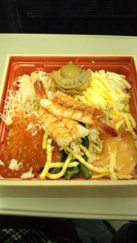 みるきーも新幹線の中で食べようと、グランスタのとあるお店で海鮮弁当を購入(E様、ご馳走さまです[d231][d231][d231])[d160]後、甲府のB級グルメの鳥モツも購入[d160]焼き鳥も[d136][d136][d136]