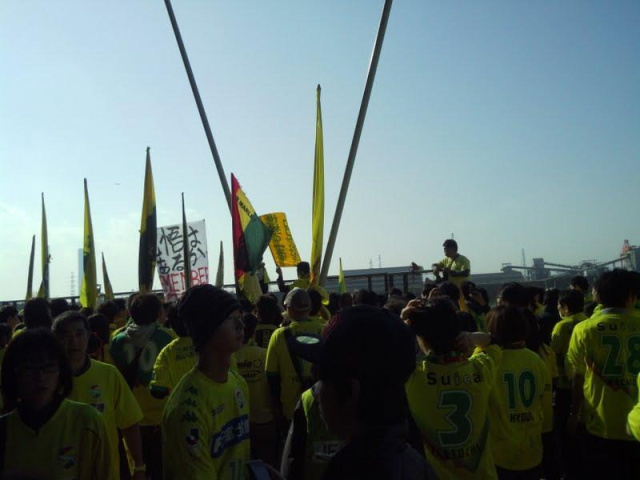 試合前は、サポーター集会も行われ。。