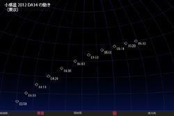 NASAによると、接近する小惑星は「2012DA14」と命名されている。計算上、約3万5800キロ離れた静止衛星よりも地球に近い、インドネシアのスマトラ沖上空約2万7700キロを南から北へ秒速7・8キロで通過。NASAは「人工衛星や国際宇宙ステーション(ISS)への影響もない」としている。