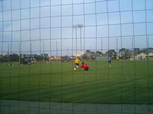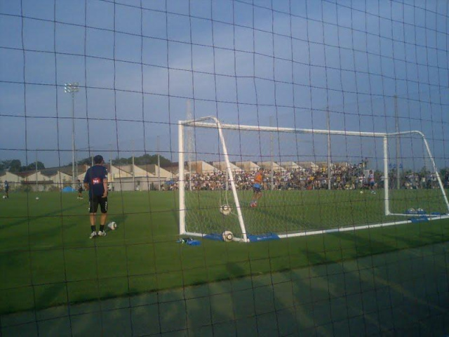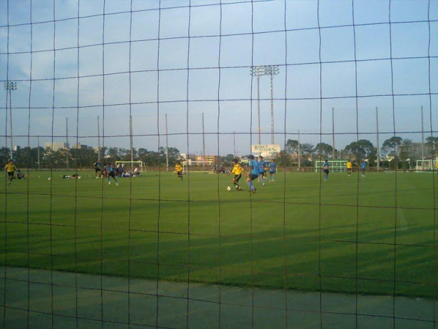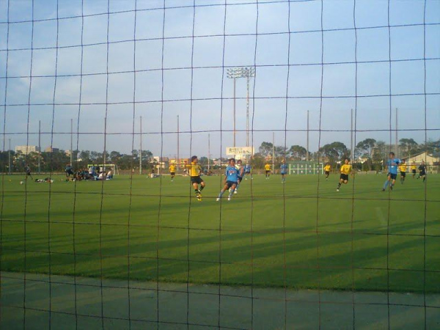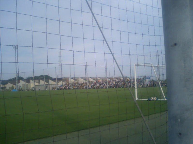 練習場スタンドは、すでに、超満員!!。。仕方なく、道路側のゴール裏での観戦!!