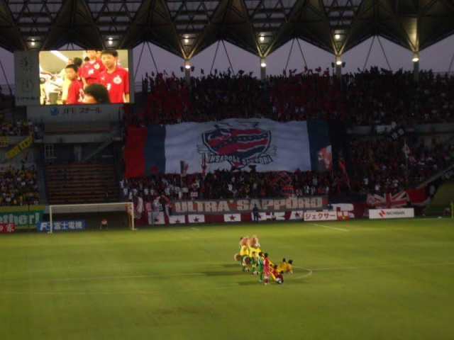 相手の応援。。凄かった。。!大勢で大挙押し寄せた。。赤いサポーター!!