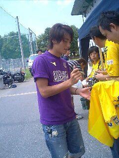 先ほどの日記の続きですが…新型インフルエンザ騒動の渦中だった千葉ですが…巻、アレックスも復帰[e734](アレックスは別メニューだが…[e814])まるで…何事も無かったようだ[e2][e319][e420]練習は、江尻監督の厳しい指導の元、選手達は…連携の確認をよくし合っていた…[e734] 写真は、練習後のMF24太田圭輔選手、MF22米倉恒貴選手、MF6下村東美選手、FW9深井正樹選手とツーショットの変に写っている私〜笑[e814][e447][e420]ランニング中のFW18巻誠一郎選手です…[e734] 土曜日のマリノス戦で…勝ち点3取って来てねェ〜笑[e814][e282]