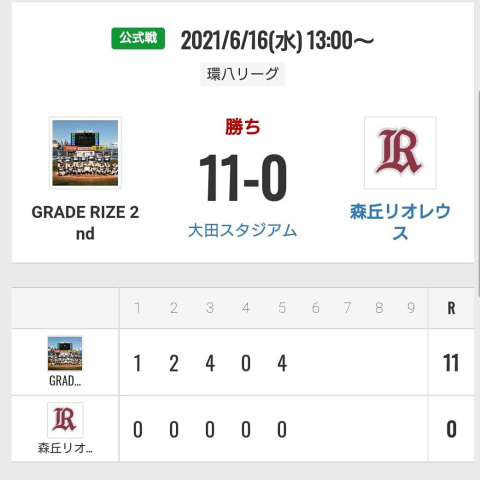 6/16水曜日 大田スタジアム 天気☁☔ 水曜日 環八リーグ GRADE RIZE 2nd