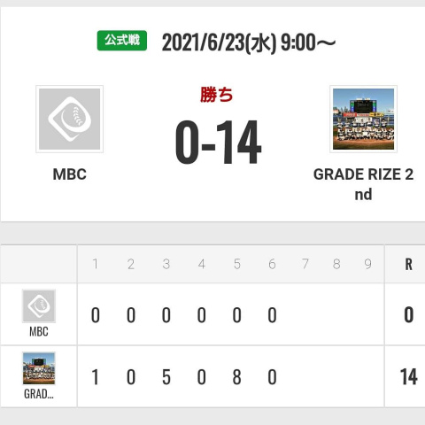 6/23水曜日 大田スタジアム 天気☁ オープン戦 2試合 GRADE RIZE 2nd