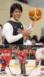 また、先日日記にて紹介しておりました、「稲葉」がバスケットボールの『レラカムイ北海道VS三菱電機』で始球式を行い、「坪井」がホッケー(日本リーグ)の『王子VS日光』の記念フェイスオフに登場しました。