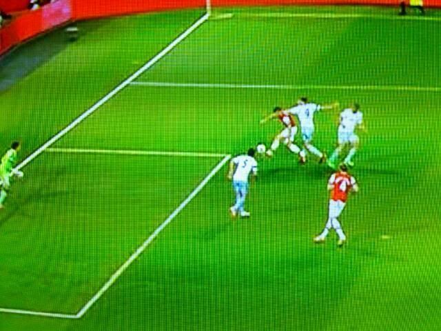 DFがラムジーに少し気がいってマークが空いたのでポドルスキは難なくゴール。
