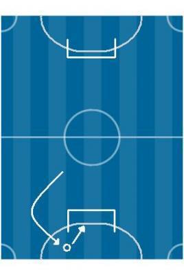 あるいは、浮き球でゴールの上を越して、ヘディングでのシュートを狙いましょう。