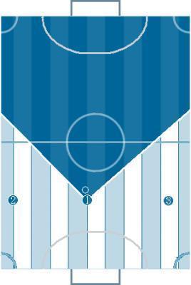 この動作により、相手FP(フィールドプレーヤー)に縦方向へのドリブルやパスを警戒させることで、選手3へパスを出しやすくなる(はず)。