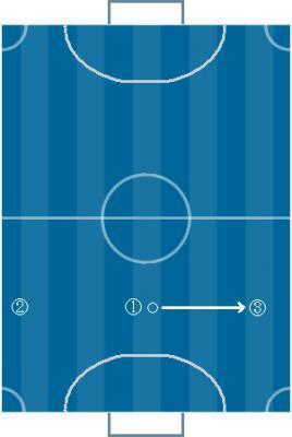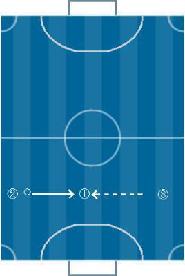 対面パスの練習の場合は、選手1はパスを出した後に選手2の側へ移動する。あとはこの繰り返し。