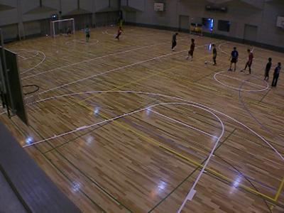 代わりにコートの2階部分にちょっとしたスペースがあったので、脚立を借りて、2階部分に登ってビデオカメラをセッティング。いやぁ〜、セッティングに30分近くかかっちゃいましたよ。何しに来てるのかなって感じですね。(^o^;