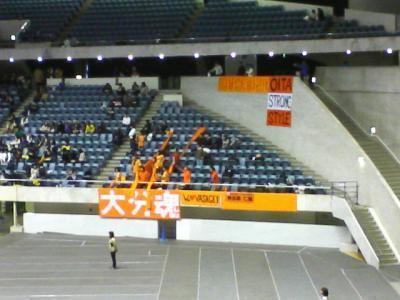 試合後、スーツ姿でサポーターに挨拶する大分・青柳選手を見掛けた。
