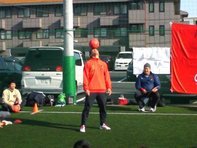 オットセイとか、背中乗せ、倒立、指先で回転(安藤選手、バスケっすか!?)、腕・肩転がし(GKだからハンドじゃないヨby渡辺選手)、空中のボールを足で一回転、ボールに回転をかけて連続して蹴り上げとかね。