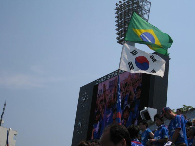 写真はゴル裏だけですがこのほかメインとバックスタンドにもギッシリと