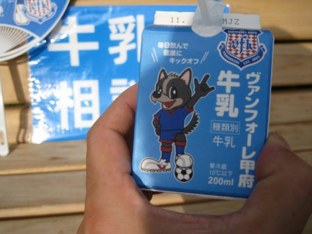 測定後、参加賞で頂いた「ヴァンフォーレ甲府牛乳」を頂きました。