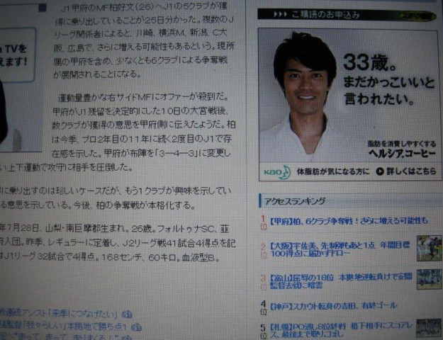 甲府でも1、2を争う本当に実力とともに人気もある選手で、柏が抜けてしまうとヴァンフォーレにとっては本当に痛手だ[d232]