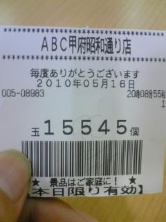 ウソだと思われては困るので出玉のレシート証明写真です。