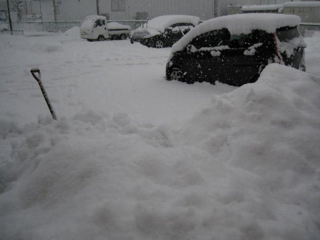 僕も昼食を自宅で済ませ、午後から約4時間、駐車場の雪かきをしました。