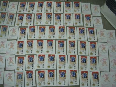(写真が今夜追い込んだ50枚分です。部屋中に年賀状が。