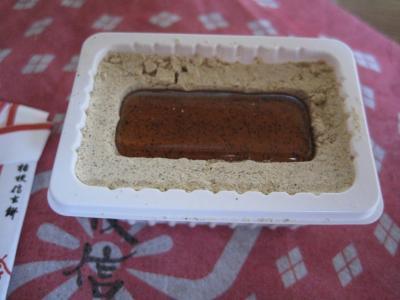 きな粉も少し黒っぽい。黒豆大豆きな粉使用だとか。