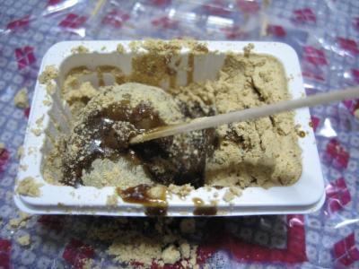 とりあえず、黒蜜を餅ときな粉の上にのせて、
