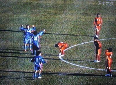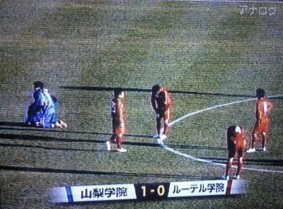 目の覚めるようなシュートが決まり0−1と山梨学院先制。
