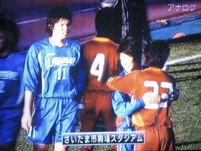 試合終了後、互いの健闘をたたえあう両チームの選手。