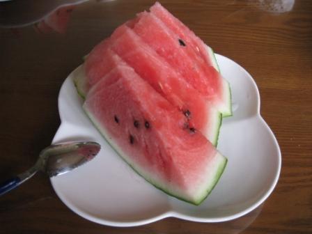 とまあ、こんな会話のやり取りがあり、何とか今年お初のスイカにありつけました。