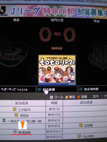 輪湖選手のゴールの表示が消え、