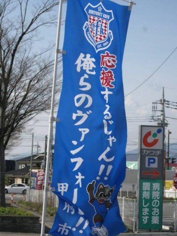 ちなみに「頑張れヴァンフォーレ甲府!」の旗はクラブで掲げているもの。