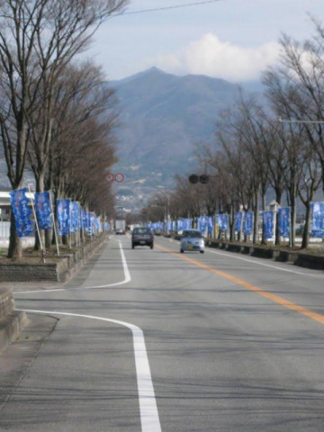 20号から小瀬スタジアムまでの約1.5キロメートルの並木道に