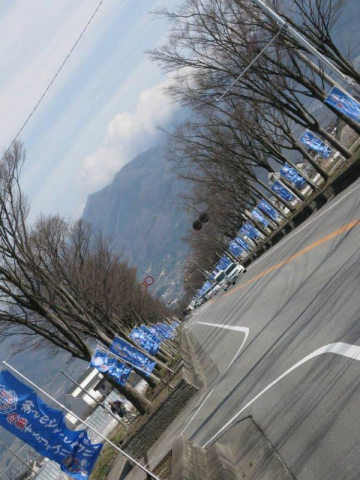 約5メートル間隔でビッシリと甲府ブルーの応援旗が・・・。