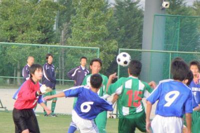大体、この手の試合は点を取られるまでどこまで持ちこたえられるかが1つのポイントになるのですが、試合は前半1分、高松中央は最初の攻撃であっさりゴールを奪ってしまいます。その後も、一方的に大手前ゴールに攻め込み点を次々に奪っていき、快勝しました。
