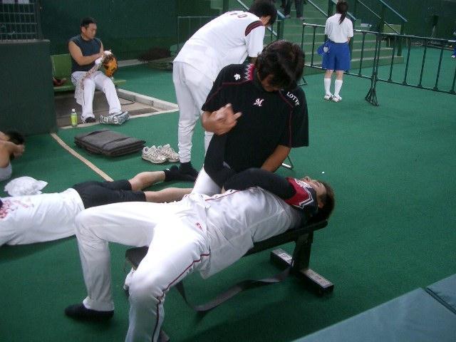 先ほどまで試合をやっていた大松・早川・荻野の3選手がマッサージを受けているでは有りませんか!!!