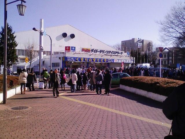 自由席は満席が予想されると係員がメガホンでアナウンスしてます。