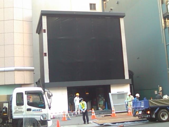 名古屋栄をブラつくと…9月末にて終了した『アサヒスーパーエクストラコールドバー』の解体作業中。あんなに行列が出来て大盛況だったのに[e263]
