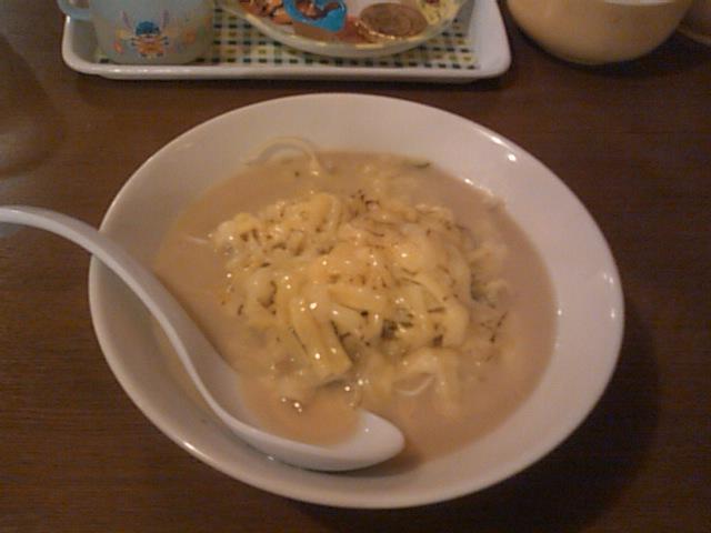トンコツ醤油のラーメンの上にとろけるチーズが[e420] トンコツ醤油とチーズの夢のコラボ[e349] このコラボは、10年前のクリームチーズとキムチのコラボへの感動と同レベル。