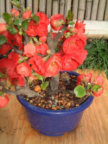 今頃ボケの花が満開。